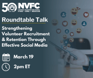 Social media is a powerful tool for connecting with your community and showcasing the value of volunteer service. This panel discussion on March 19 at 2pm ET will explore strategies for using social media to enhance recruitment and retention efforts. Learn how to highlight your department’s culture, share compelling stories, engage prospective volunteers, and build an online presence that supports long-term membership growth. Register.